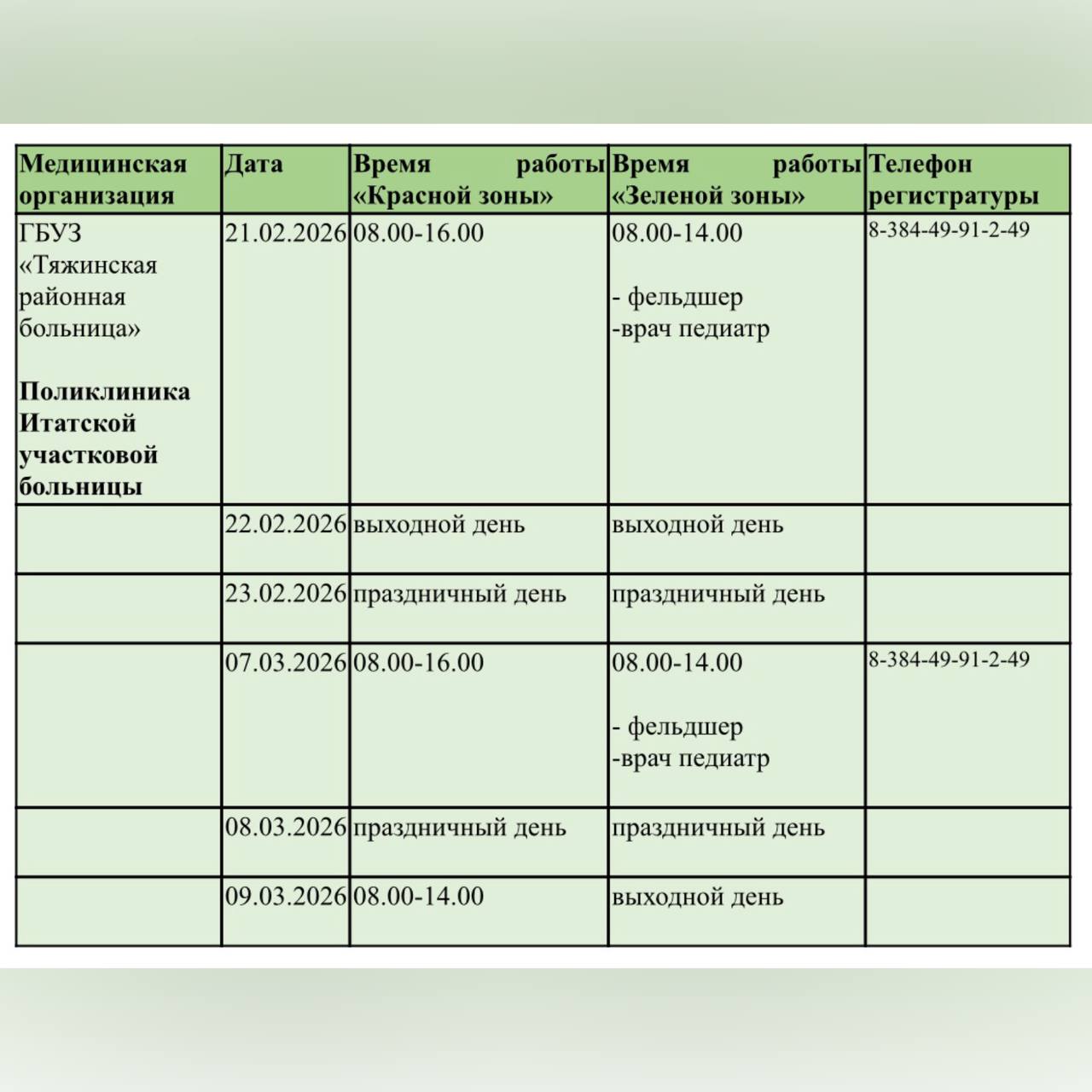 ☎️ Итатская участковая больница 8-384-49-91-2-49